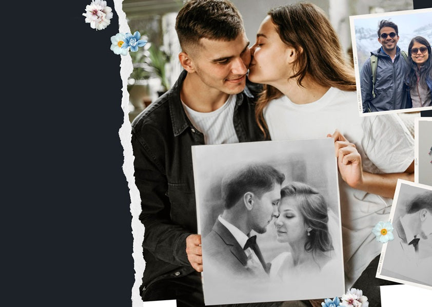 Handmade Couple Sketch | Perfect Engagement Gift for Couples | Order Online